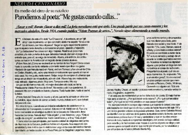 Parodiemos al poeta : "Me gustas cuando callas..." [artículo] Alfredo Barría.