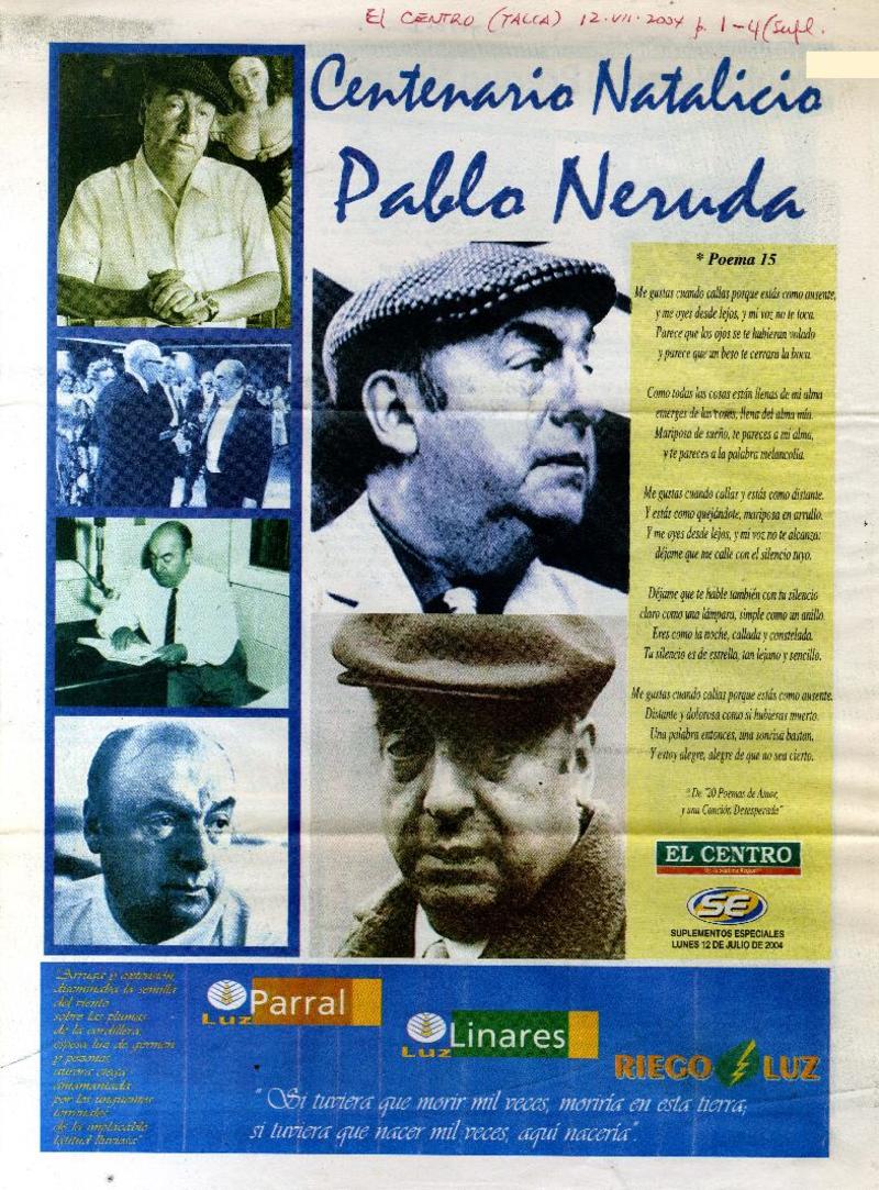 Pablo Neruda : Premio Nobel de Literatura A 100 años de su natalicio [artículo] :