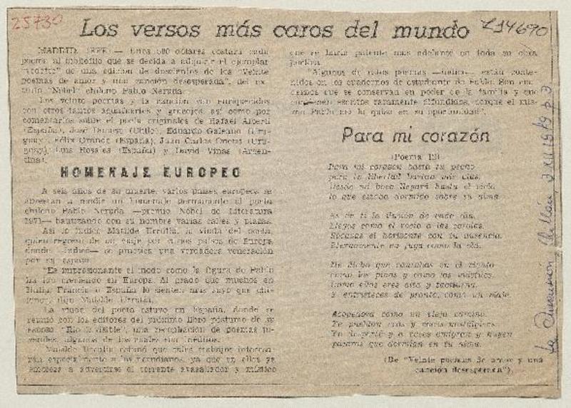 Veinte poemas de amor y una canción desesperada [artículo] Julio Orlandi.