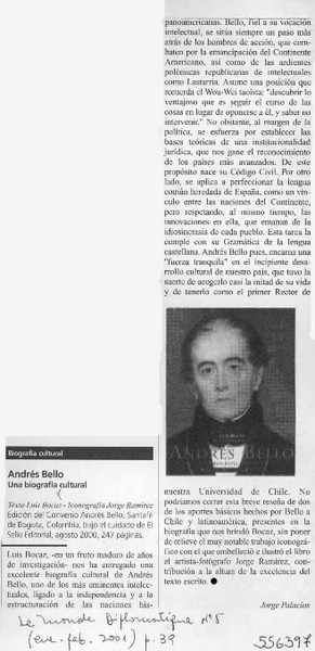 Andrés Bello, una biografía cultural [artículo] Jorge Palacios