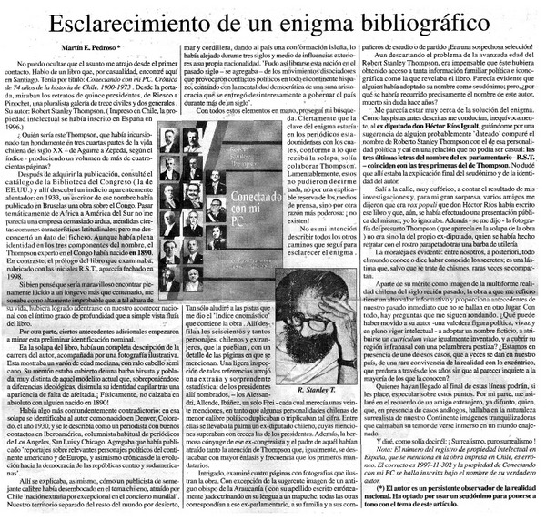 Una novela de misterio [artículo] Marino Muñoz Lagos.