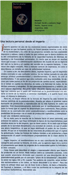 Una lectura personal desde el imperio [artículo] Jorge Guzmán.