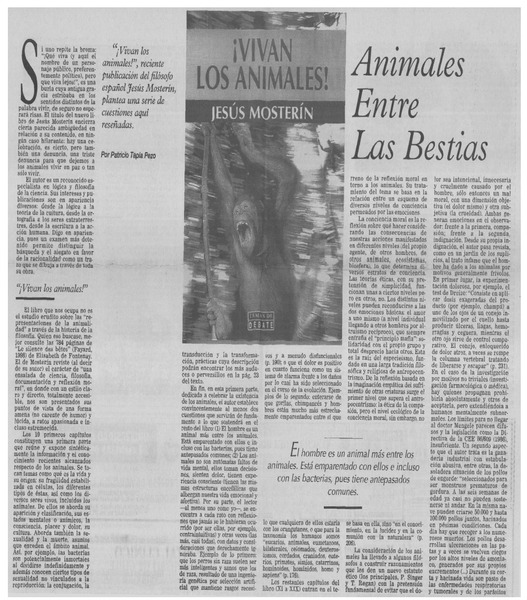 Animales entre las bestias [artículo] Patricio Tapia Pezo.