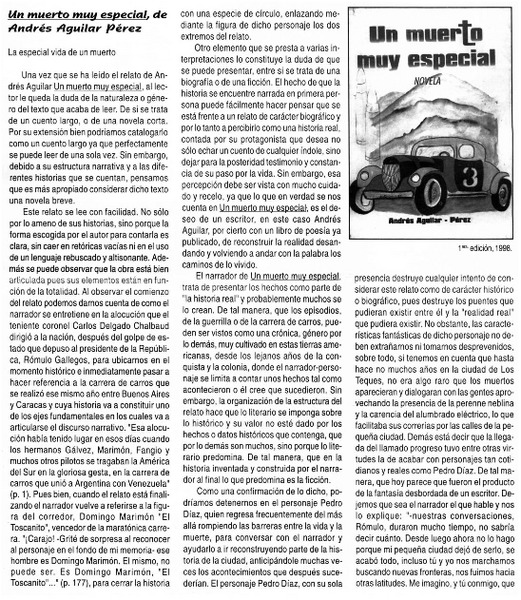 Un muerto muy especial, Andrés Aguilar Pérez [artículo] Armando Hernández Quintero.