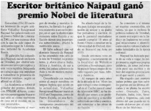Walcott, poeta antillano, ganó el Nobel. [artículo]
