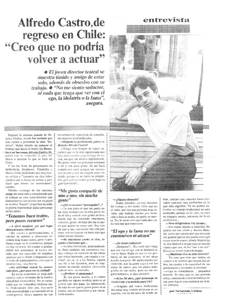 Alfredo Castro rompe mitos [artículo] Claudia Guzmán V.