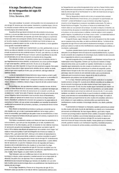 A la zaga. Decadencia y fracaso de las vanguardias del siglo XX [artículo] Voluspa Jarpa.