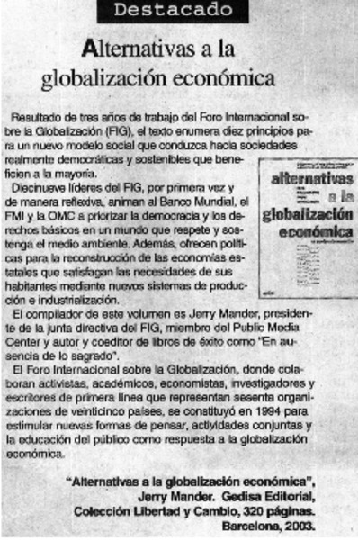 Alternativas a la globalización económica. [artículo]