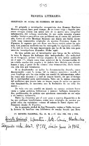 Unamuno y la literatura latinoamericana [artículo] Guillermo de Torre.