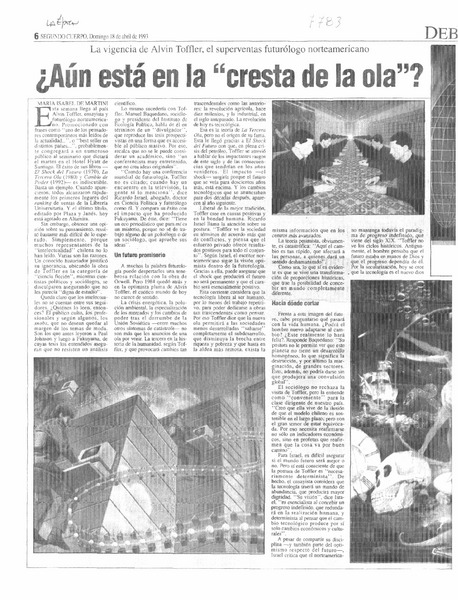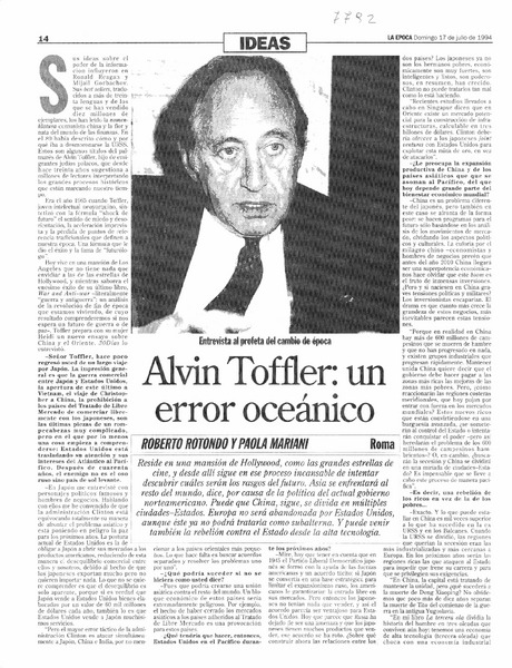 Alvin Toffler: un error oceánico [artículo] Roberto Rotondo [y] Paola Mariani.
