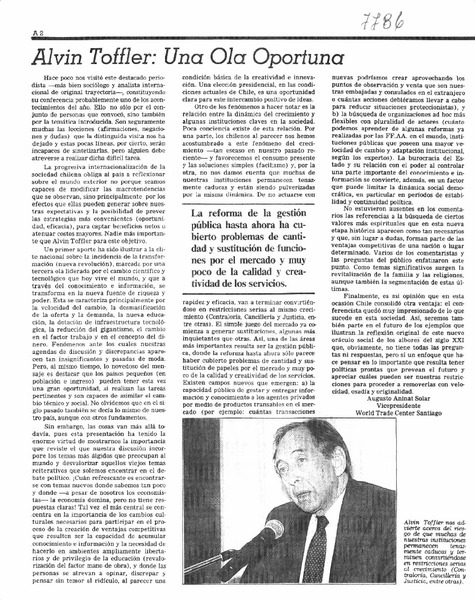 Alvin Toffler: una ola oportuna [artículo] Augusto Aninat Solar.