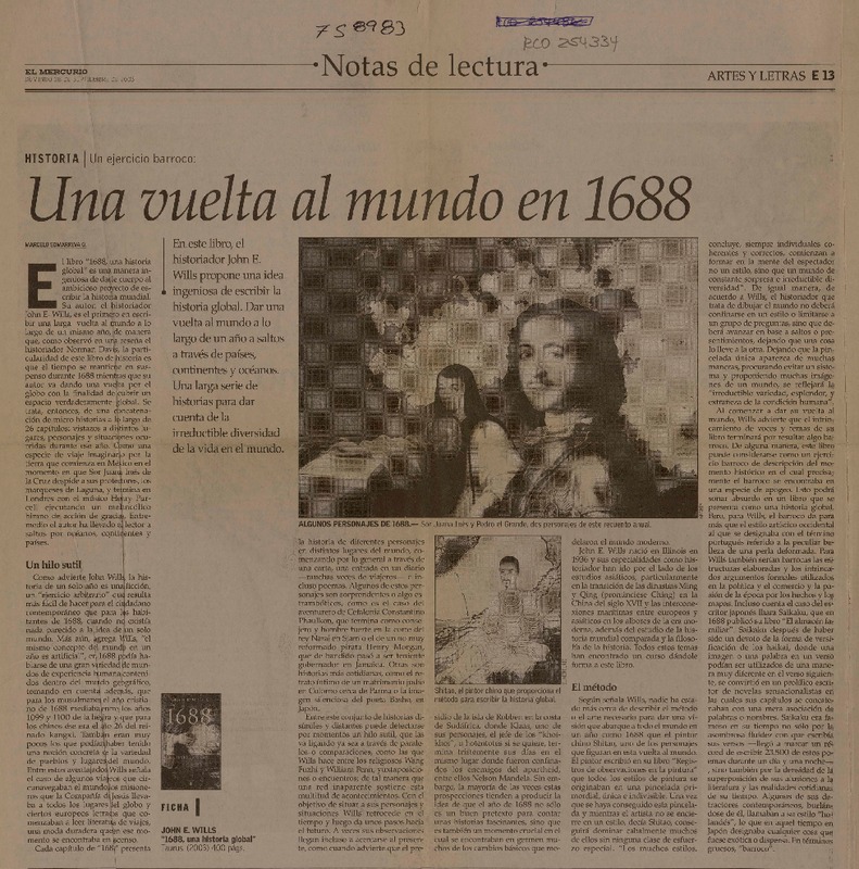 Una vuelta al mundo en 1688 [artículo] Marcelo Somarriva Q.