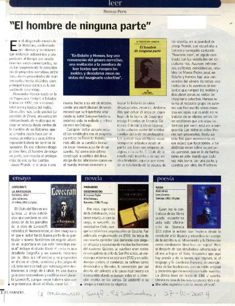 Aquí no eres un extraño [artículo] Alvaro Bisama.