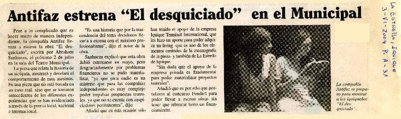 Antifaz estrena "El desquiciado" en el Municipal. [artículo]