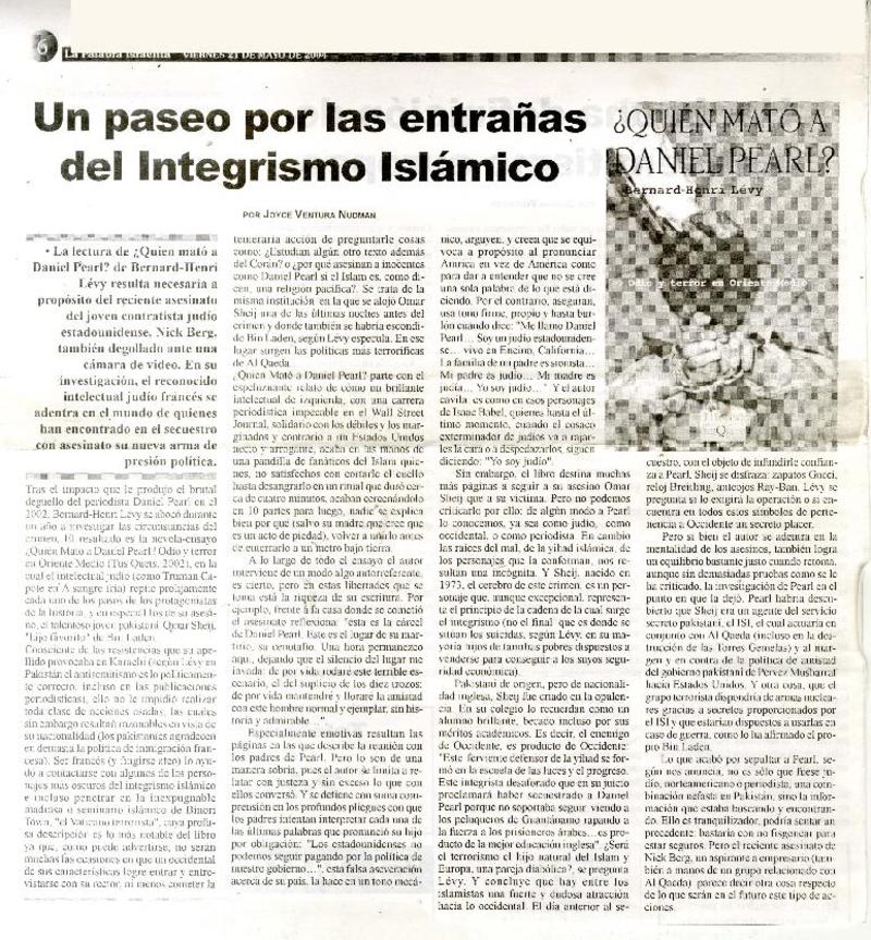 Un Paseo por las entrañas del integrismo Islámico [artículo] Joyce Ventura Nudman.