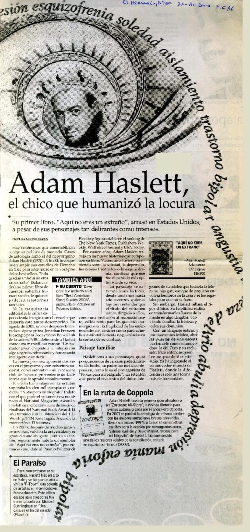 Adam Haslett, el chico que humanizó la locura. [artículo]