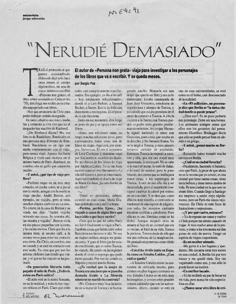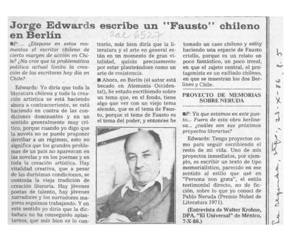 Autores chilenos - Entrevistas - Neruda, Pablo - Edwards, Jorge