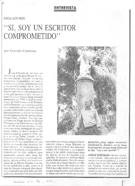 "Sí, soy un escritor comprometido" [artículo] Gonzalo Contreras.