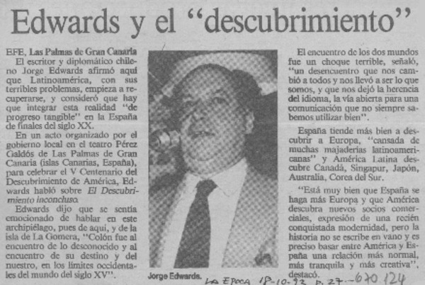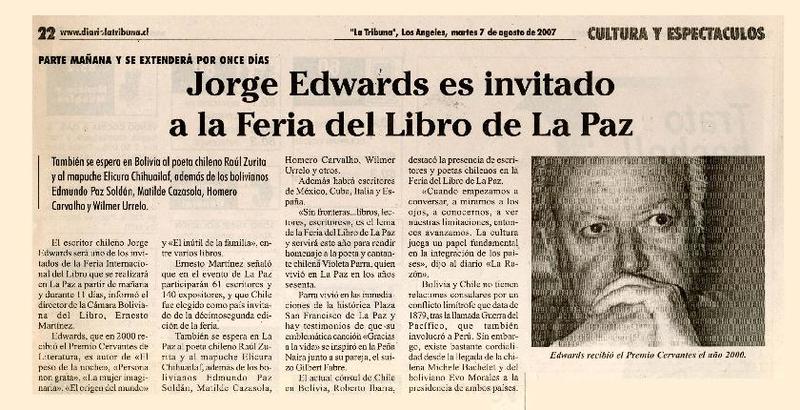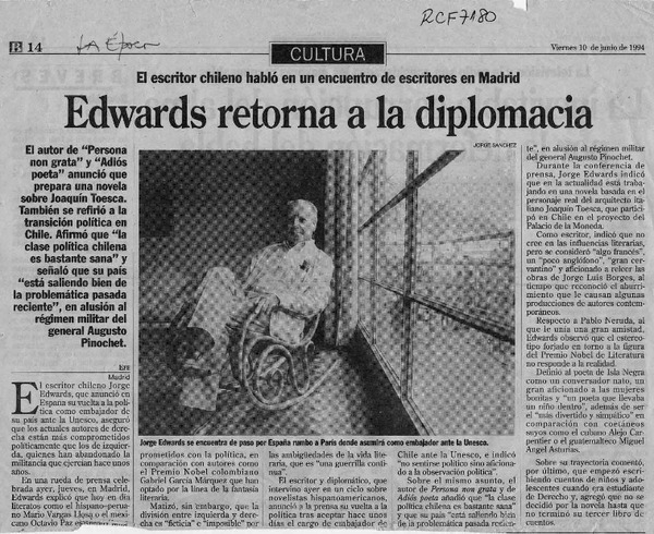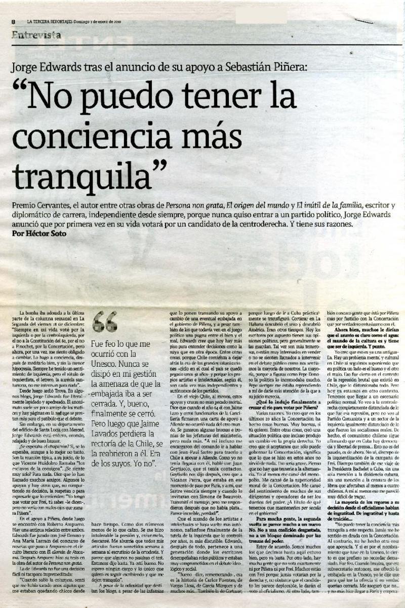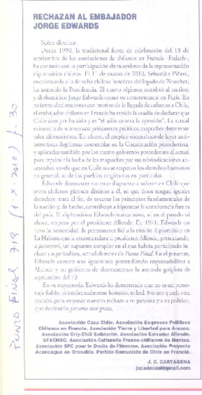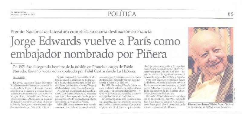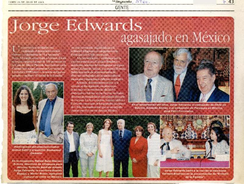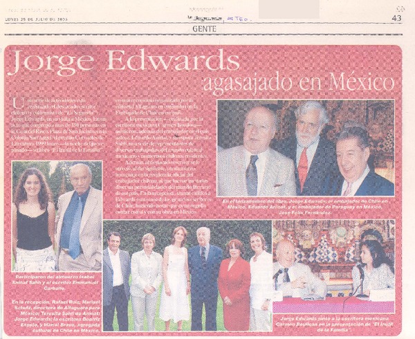 Rechazan al embajador Jorge Edwards [artículo] J. C. Cartagena.