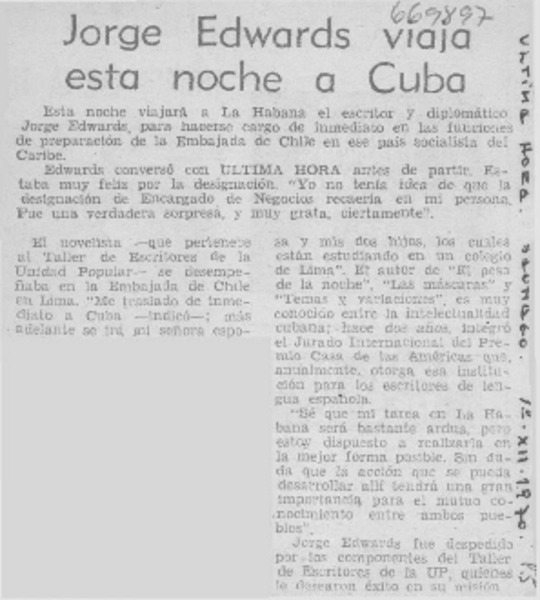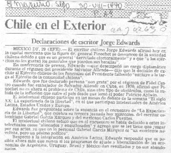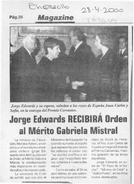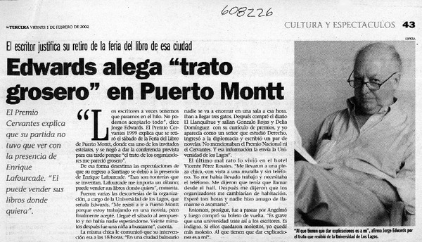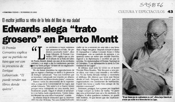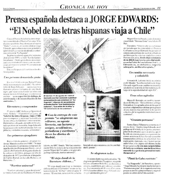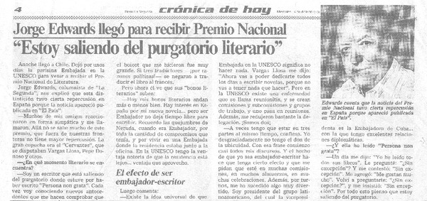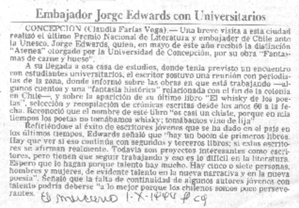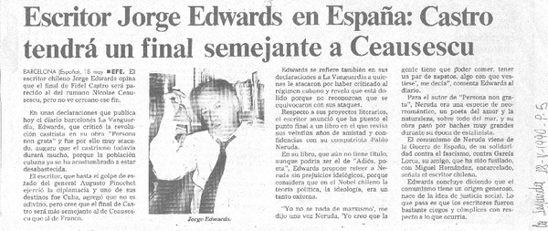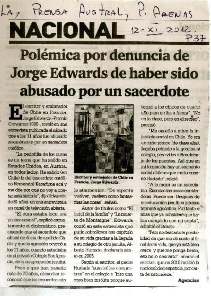 Rechazan al embajador Jorge Edwards [artículo] J. C. Cartagena.