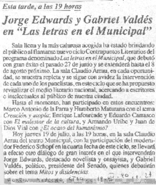 Se enfrentan Jorge Edwards y Gabriel Valdés [artículo].
