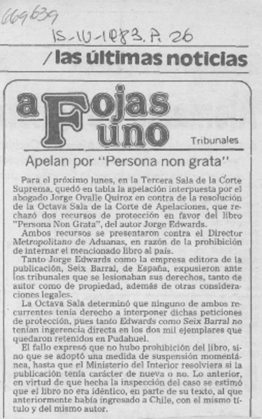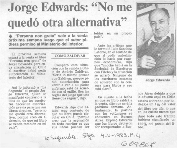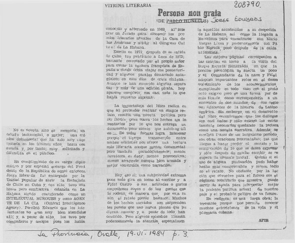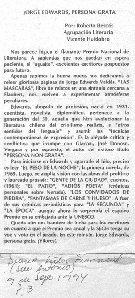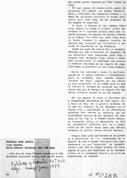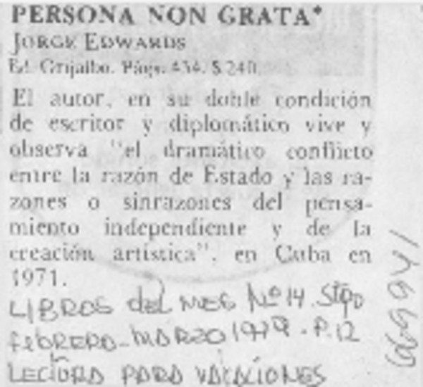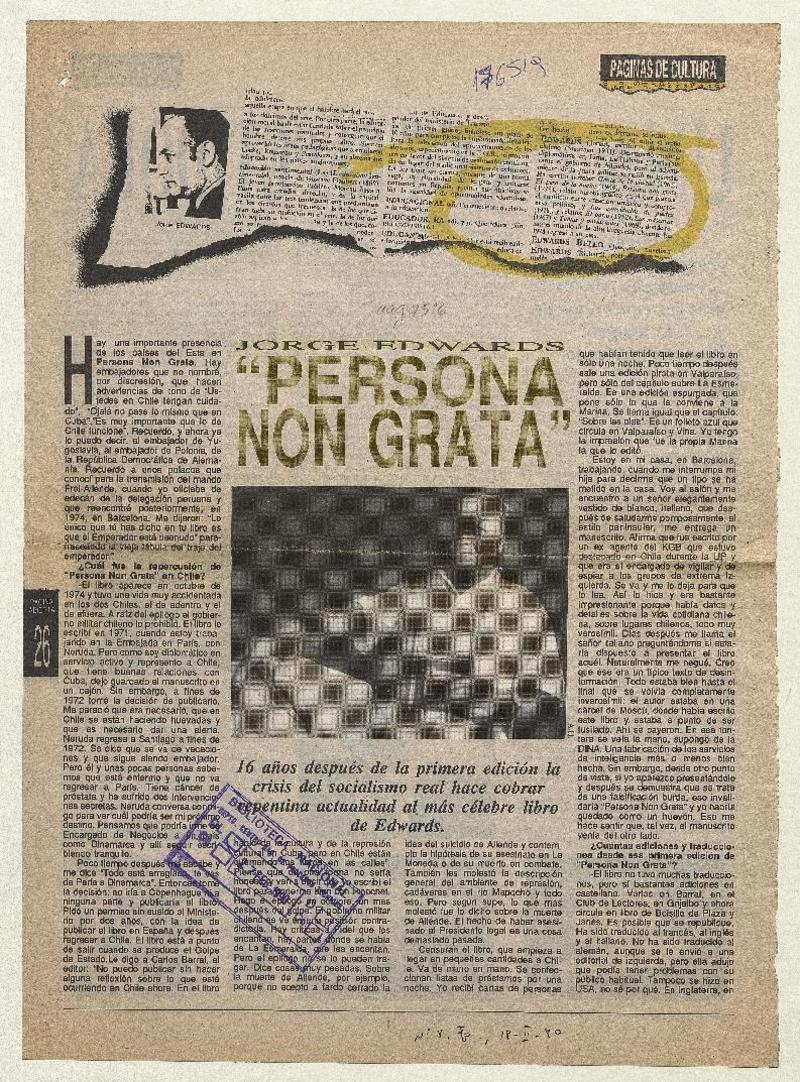 Autores chilenos - Persona non grata - Edwards, Jorge