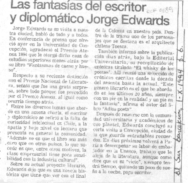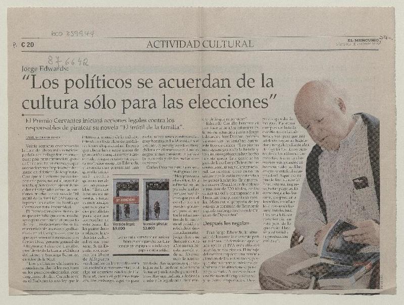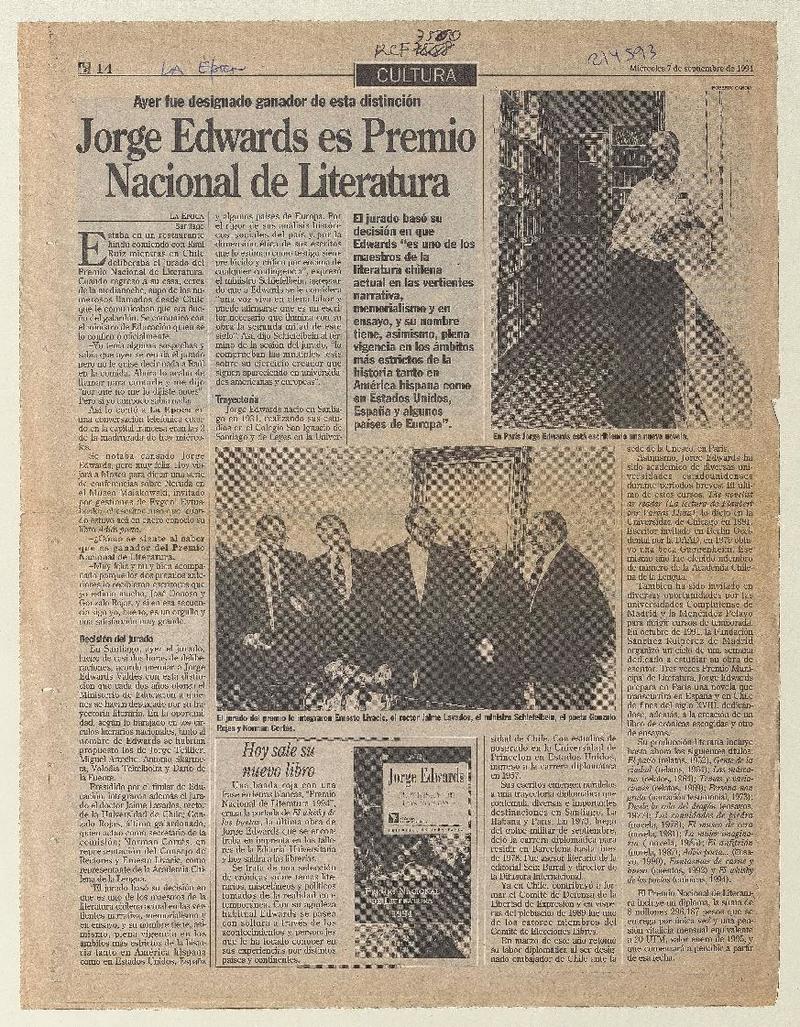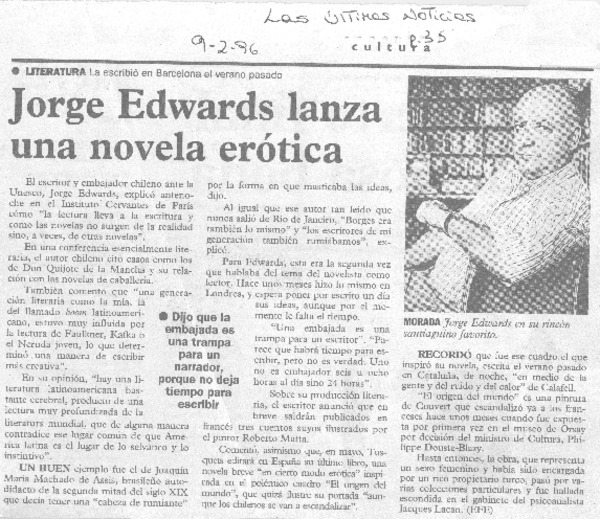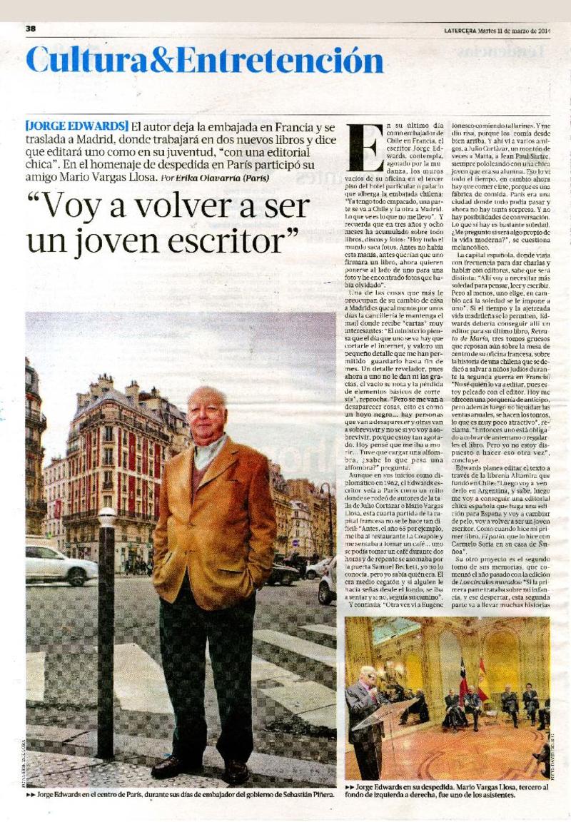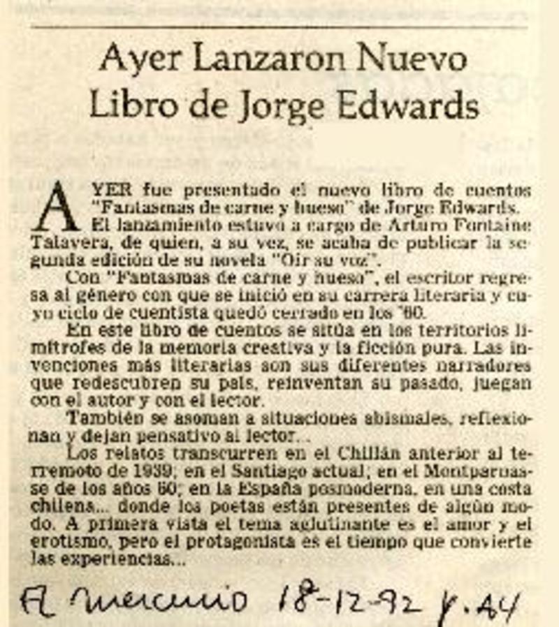 Ayer lanzaron nuevo libro de Jorge Edwards. [artículo]