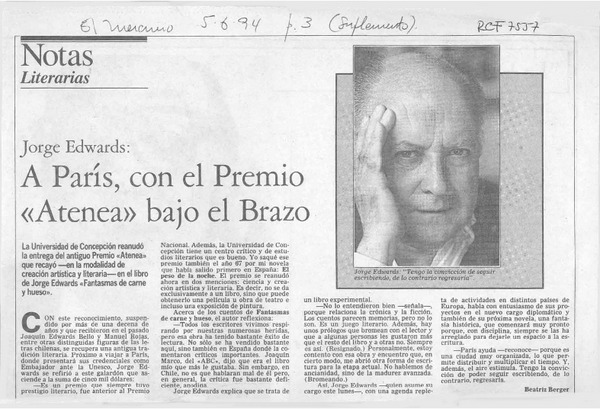 A París, con el premio "Atenea" bajo el brazo [artículo] Beatriz Berger.