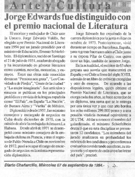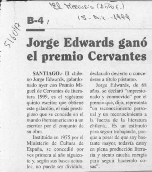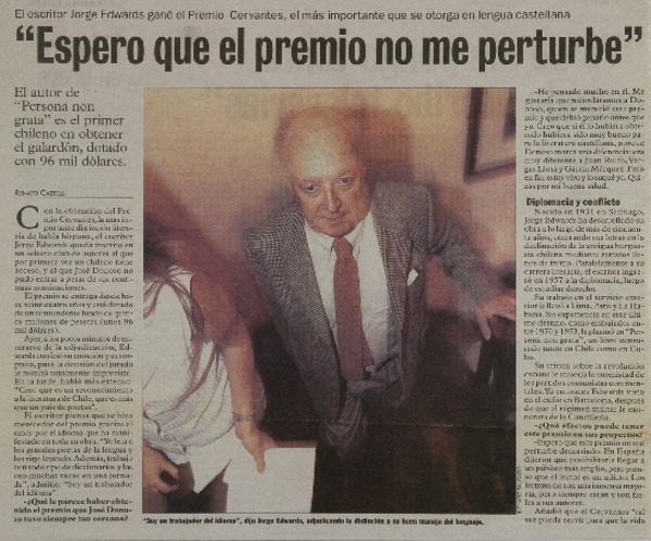 Chileno Jorge Edwards ganó prestigioso premio Cervantes [artículo]