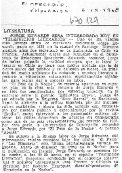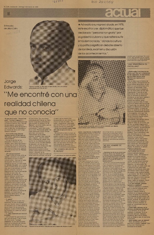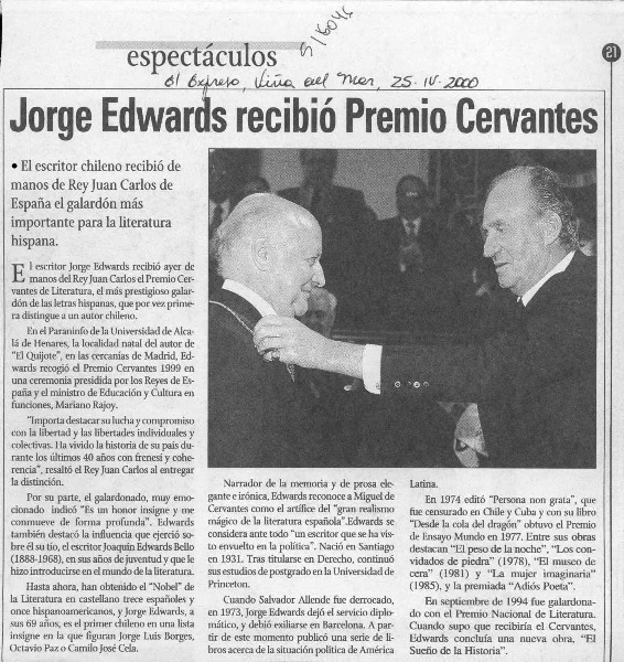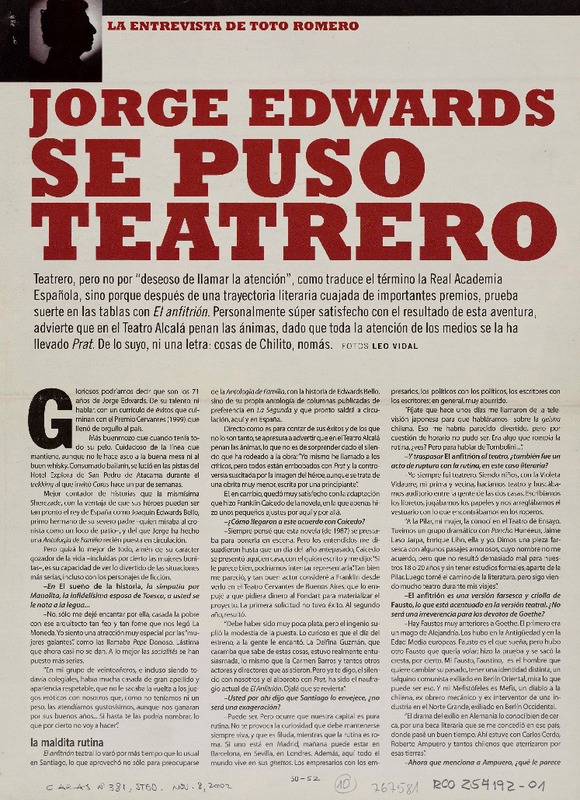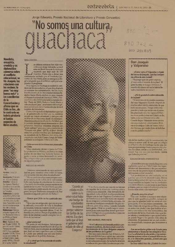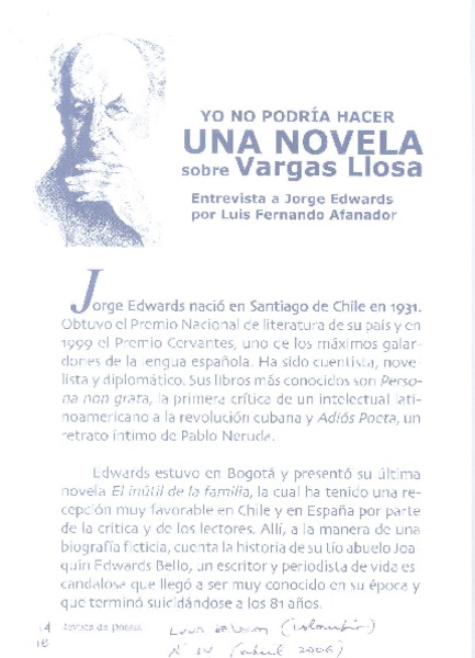 Autores chilenos - Edwards, Jorge - Entrevistas