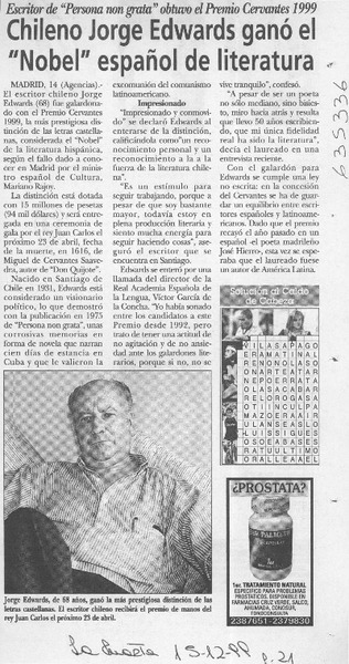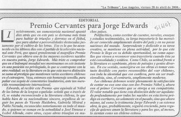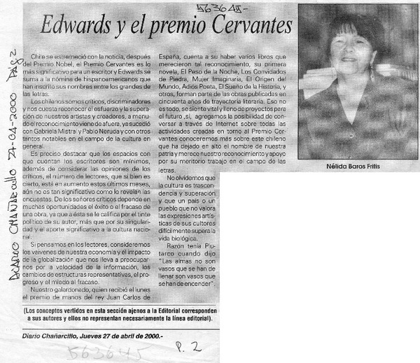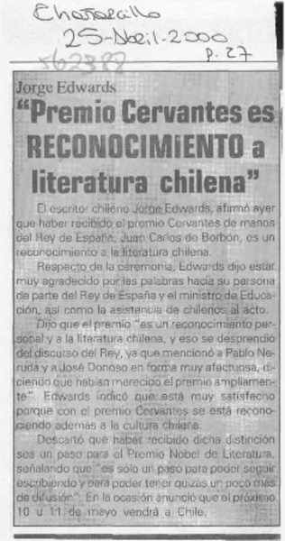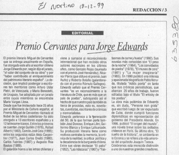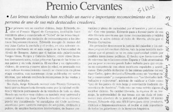 Viva el Premio Cervantes [artículo] Alfredo Barría M.