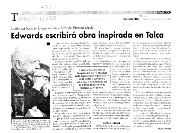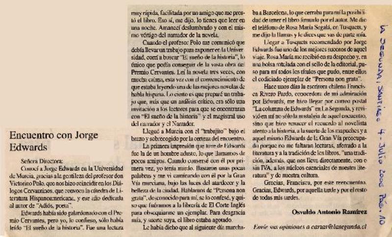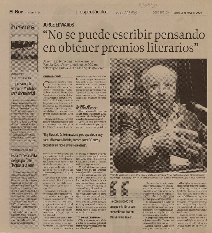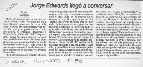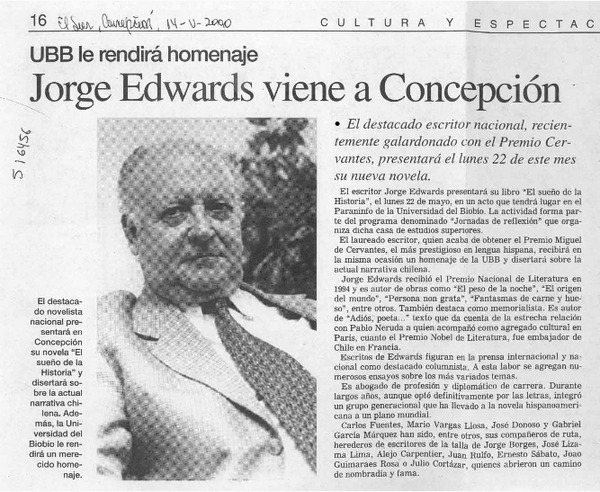 Visita de Jorge Edwards [artículo] Luis Sánchez Latorre.