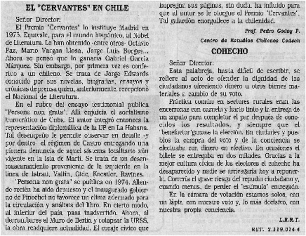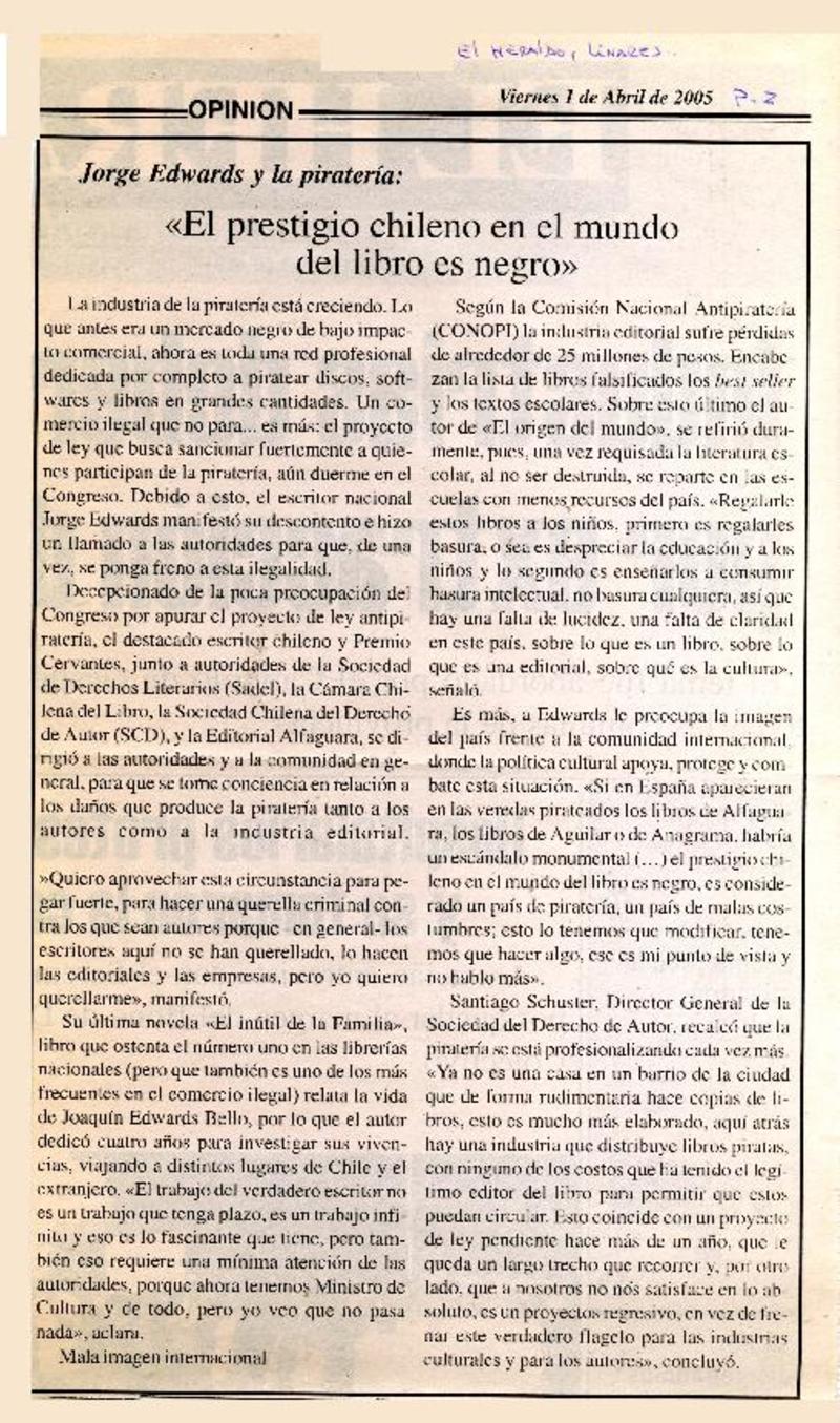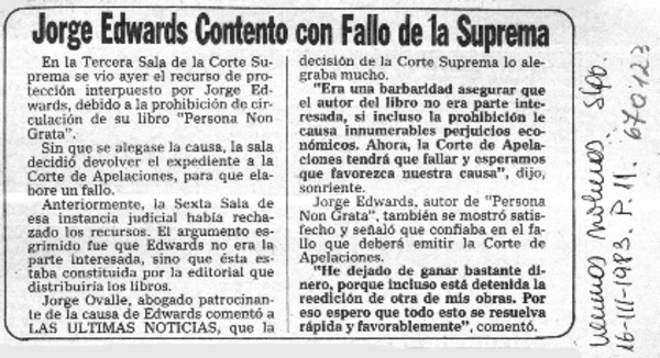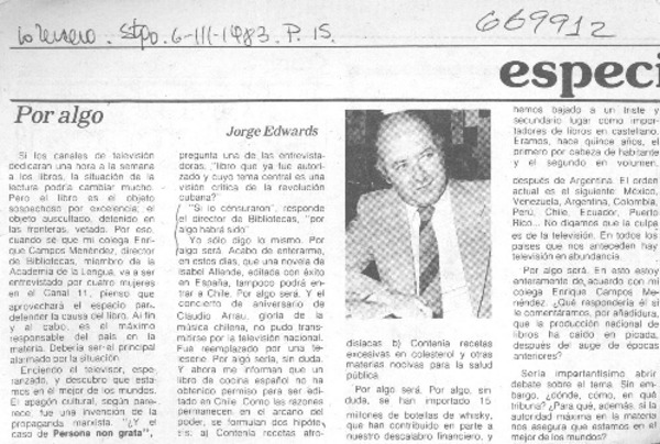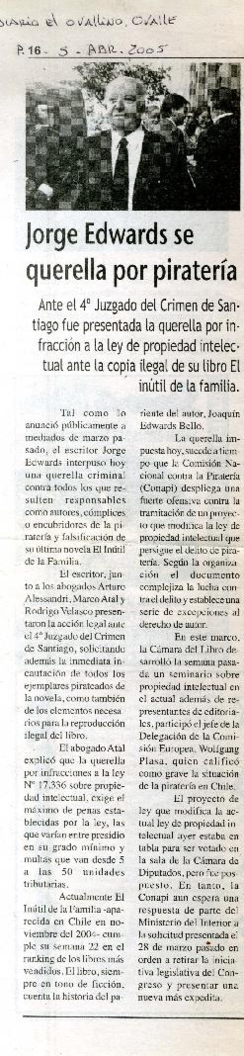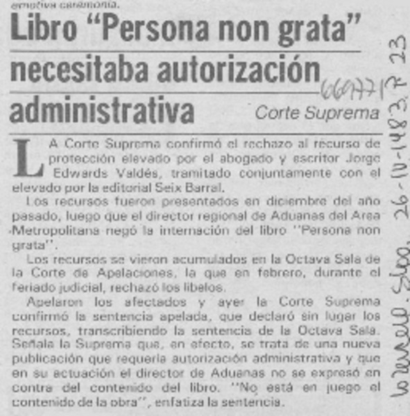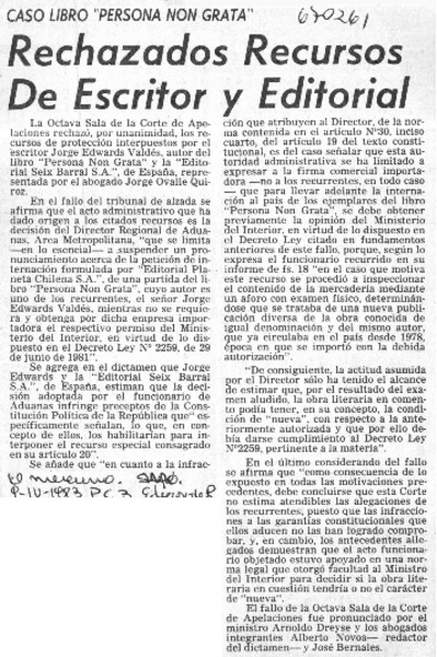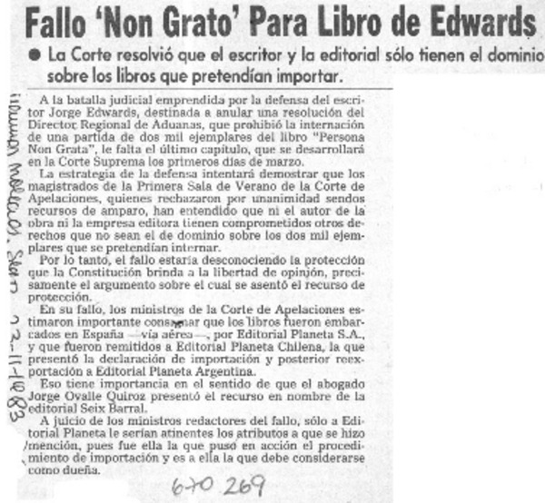 A firme rechazo de ingreso de libro de Jorge Edwards. [artículo]
