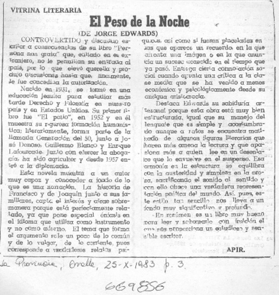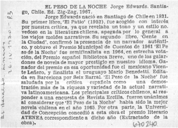 Edwards, Jorge - Autores chilenos - Peso de la noche