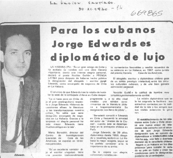 Un escritor en la diplomacia homenaje a Jorge Edwards [artículo] Oscar Pinochet de la Barra.