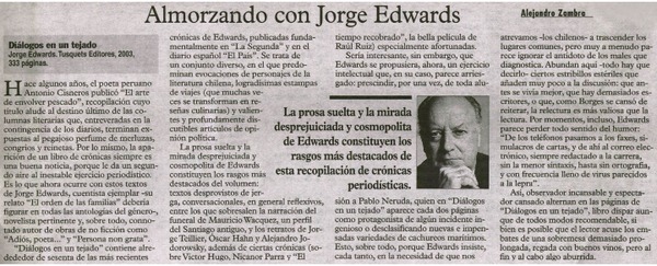 Almorzando con Jorge Edwards [artículo] Alejandro Zambra.