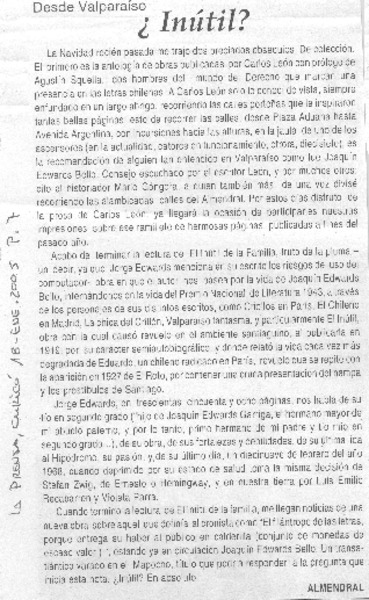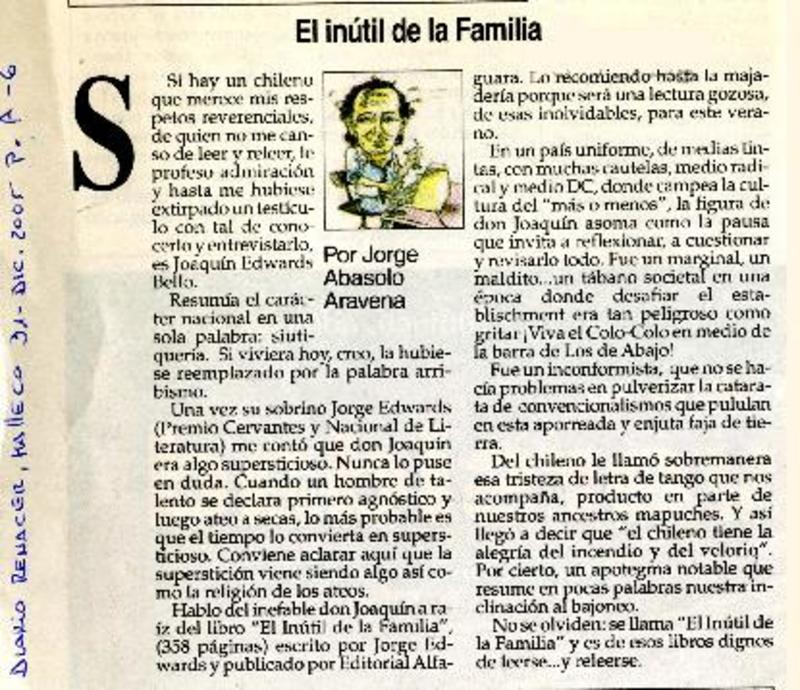 Autores chilenos - Edwards, Jorge - Edwards Bello, Joaquín - Inútil de la familia