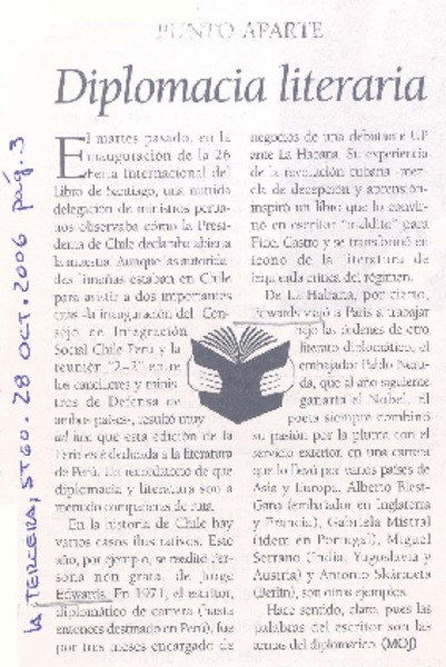 Un embajador de las letras chilenas [artículo] Claudio Zeiger.