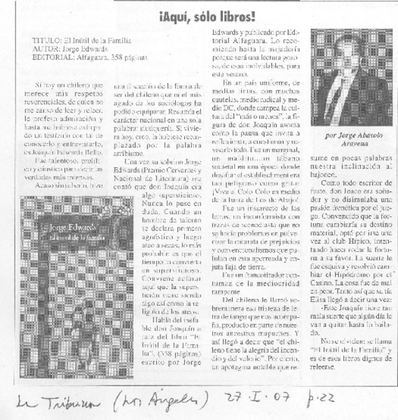 ¡Aquí sólo libros! [artículo] Jorge Aravena Abasolo.