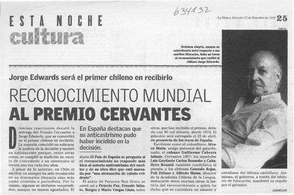 Reconocimiento mundial al Premio Cervantes [artículo]