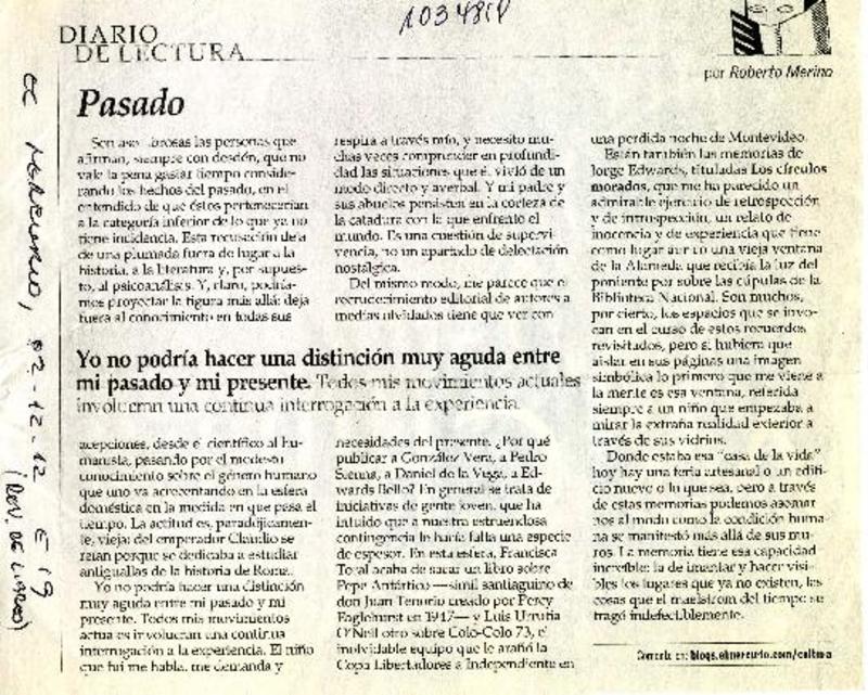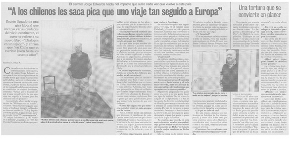 A los chilenos les saca pica que uno viaje tan seguido a Europa" : [entrevista] [artículo] Rodrigo Castillo R.