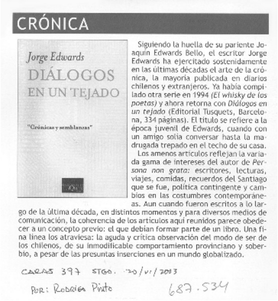 Autores chilenos - Edwards, Jorge - Diálogos en un tejado