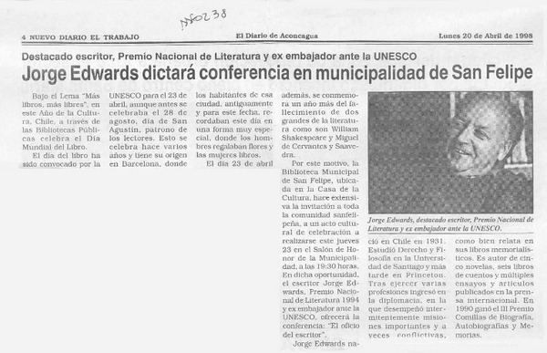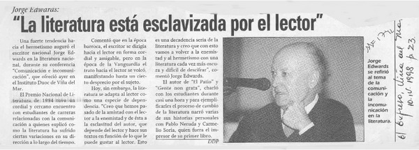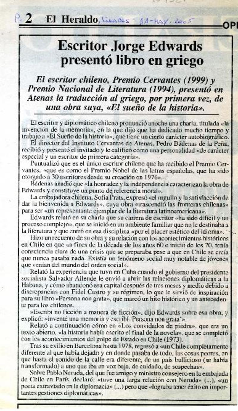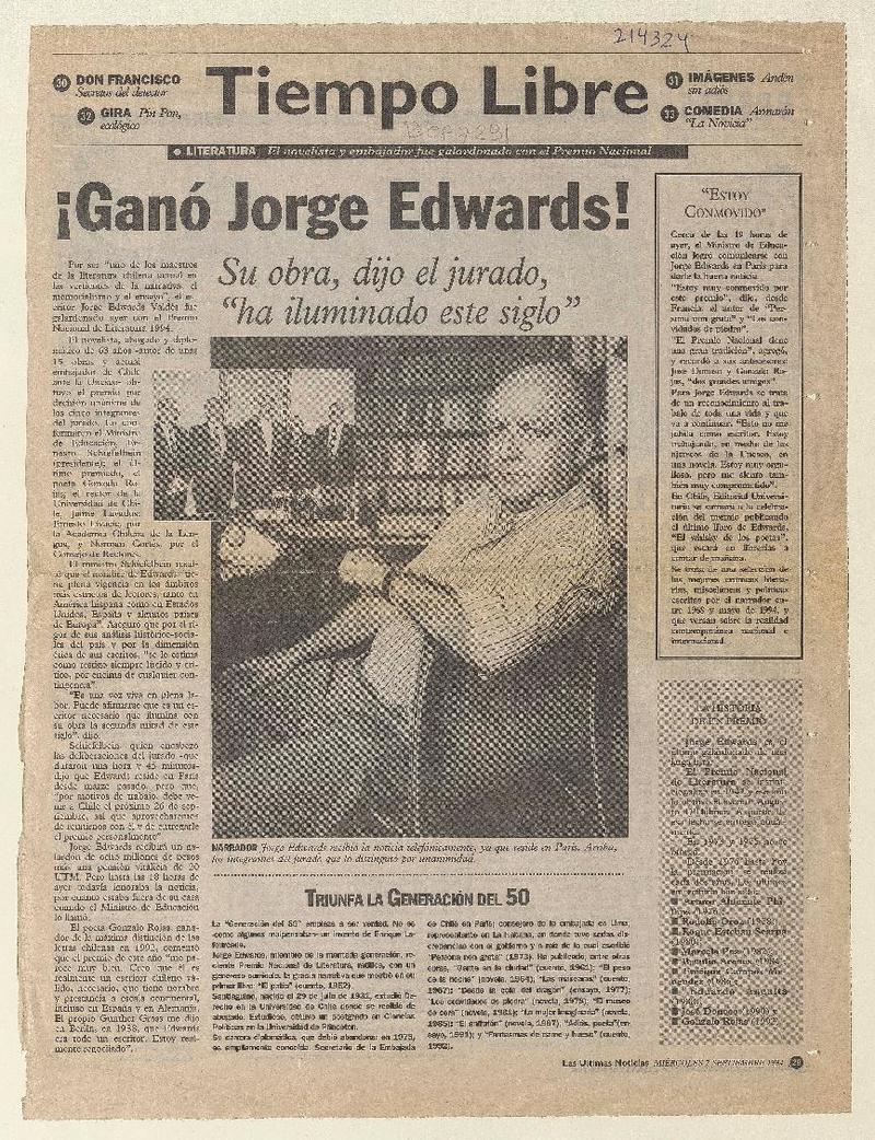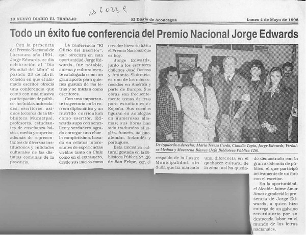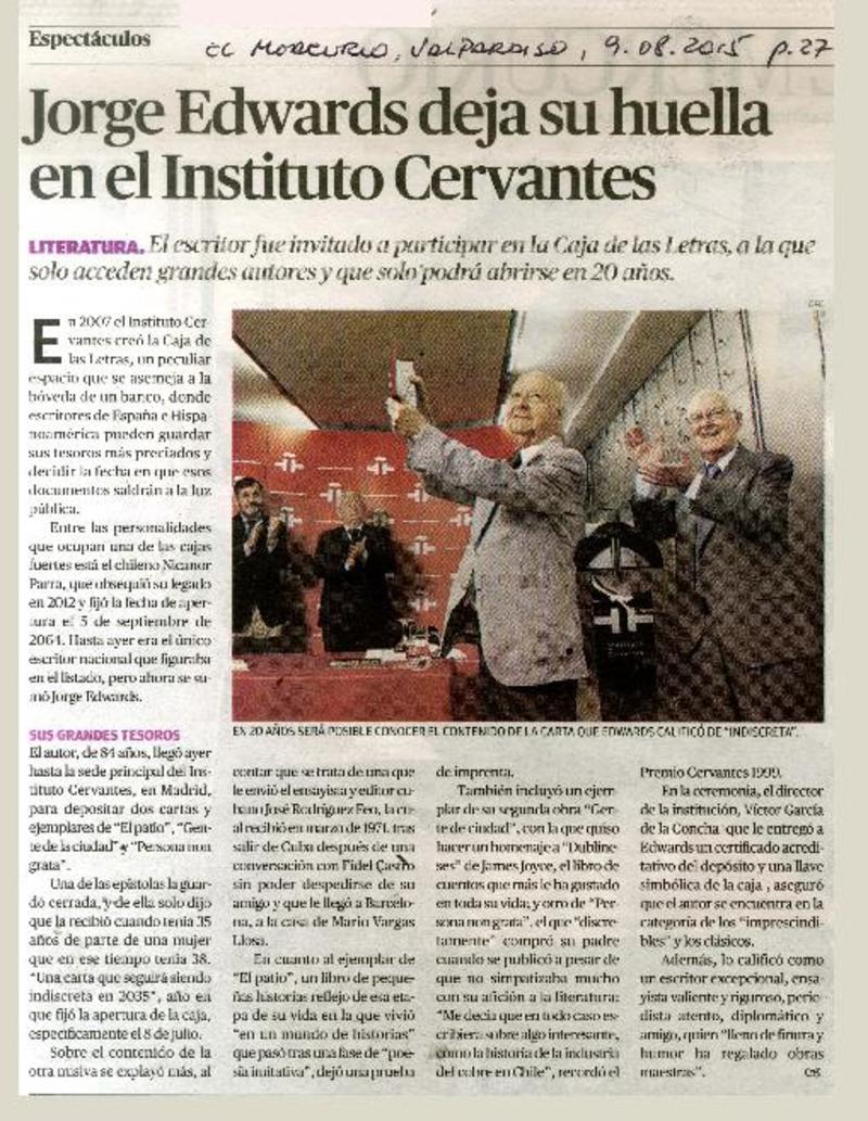 Todo un éxito fue conferencia del Premio Nacional Jorge Edwards [artículo].