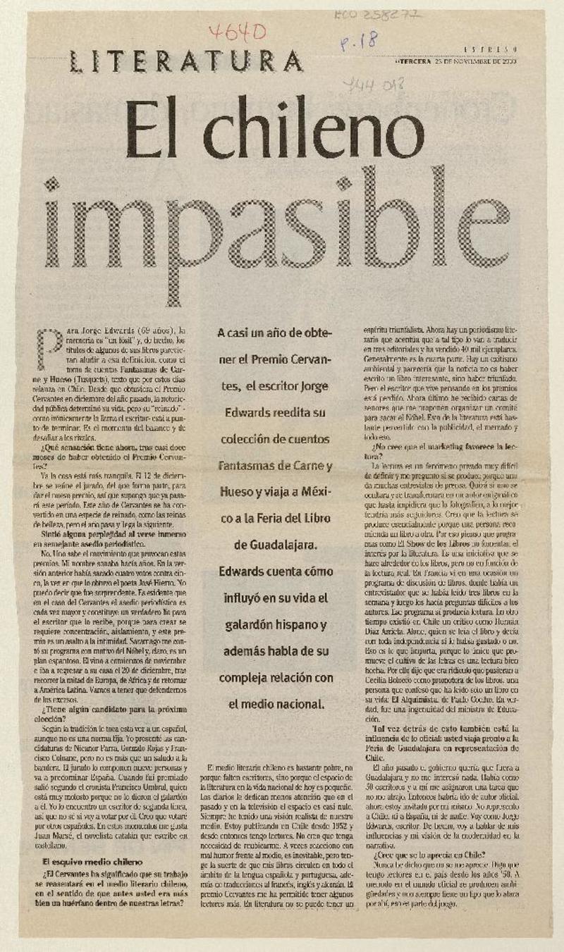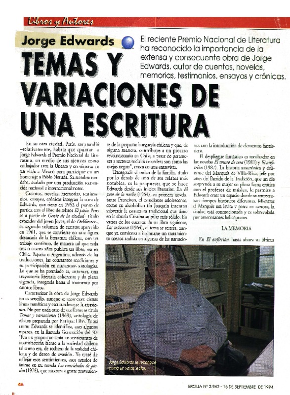 Autores chilenos - Entrevistas - Edwards, Jorge