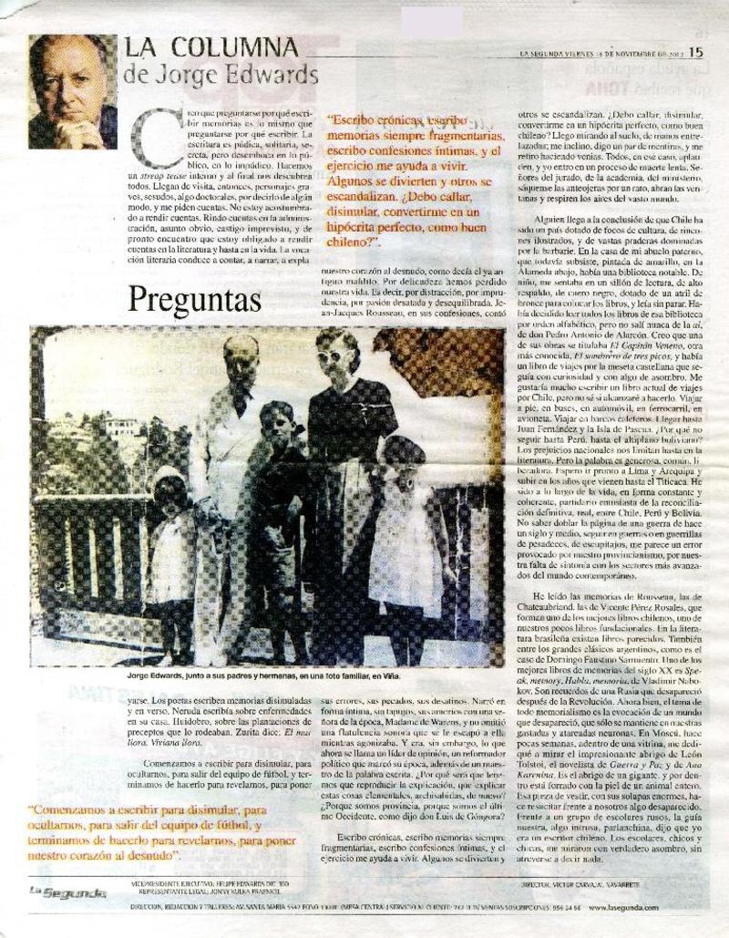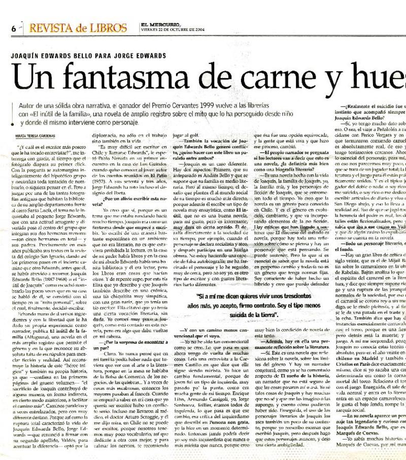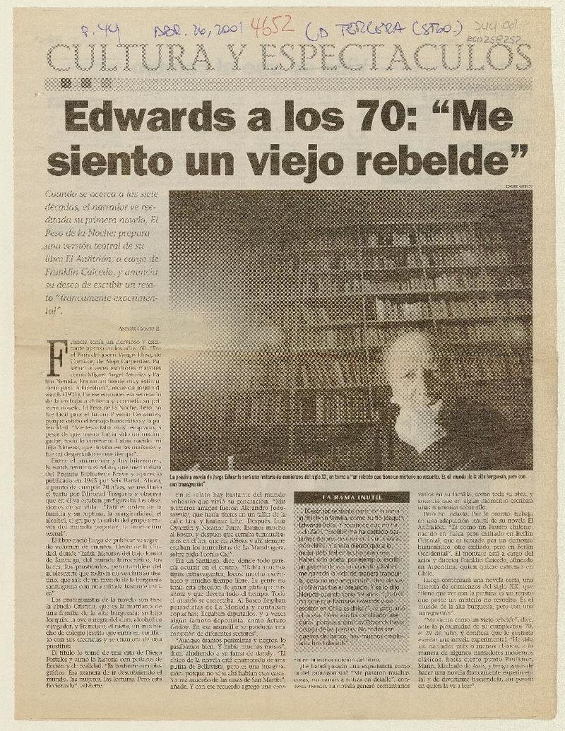 Autores chilenos - Entrevistas - Edwards, Jorge - Inútil de la familia
