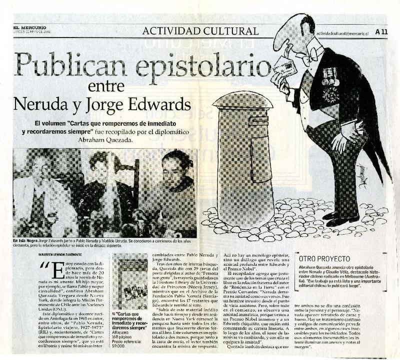 Autores chilenos - Neruda, Pablo - Edwards, Jorge - Correspondencia entre Pablo Neruda y Jorge Edwards