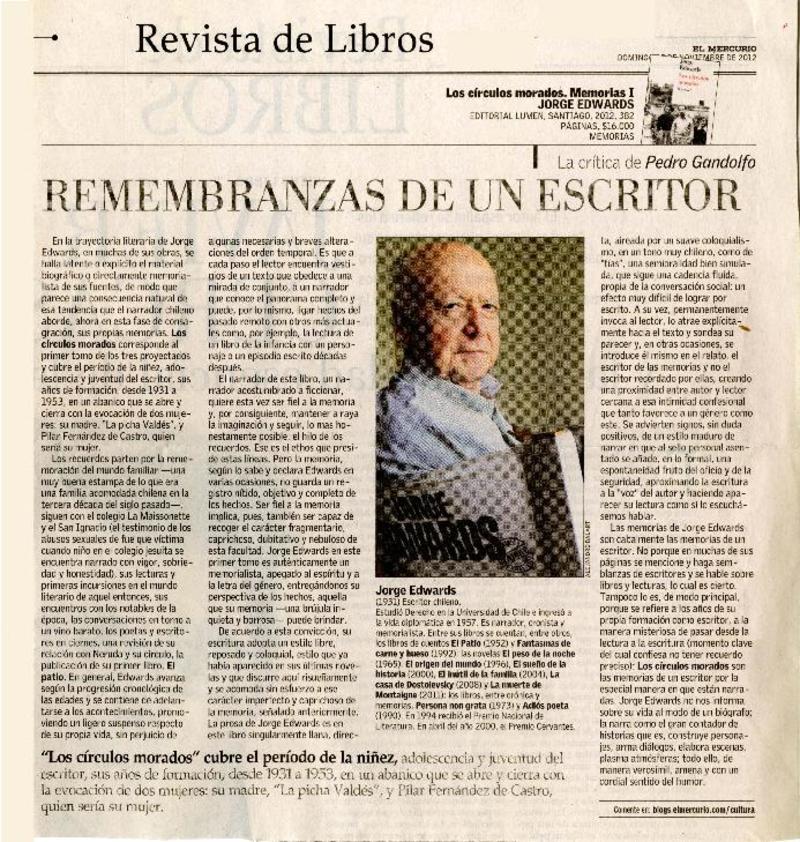 Remembranzas de un escritor [artículo] Pedro Gandolfo.