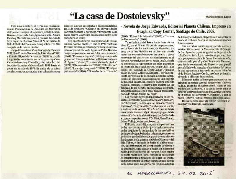 Una pasión atravesada por los celos, última novela de Edwards [artículo] Rosa López.