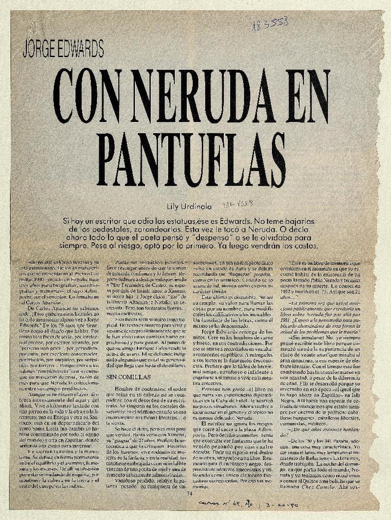 Con Neruda en pantuflas [artículo] Lily Urdinola.