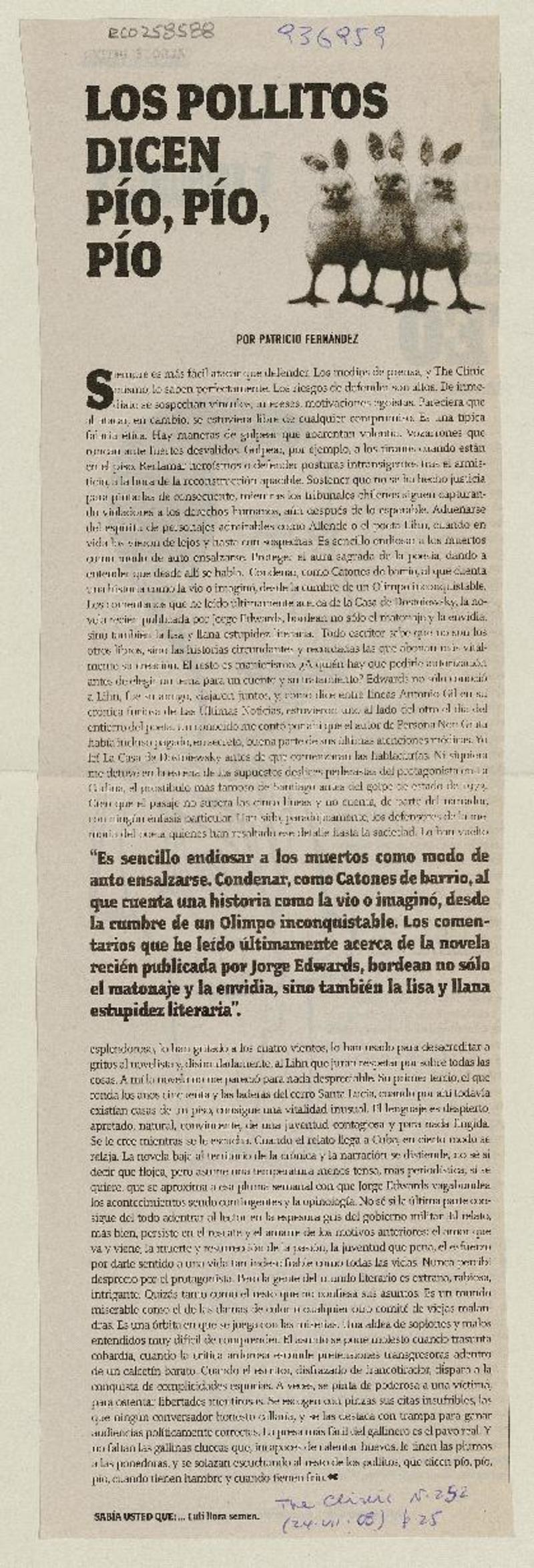 Eltit, Diamela - Autores chilenos - Parra, Marco Antonio de la - Edwards, Jorge